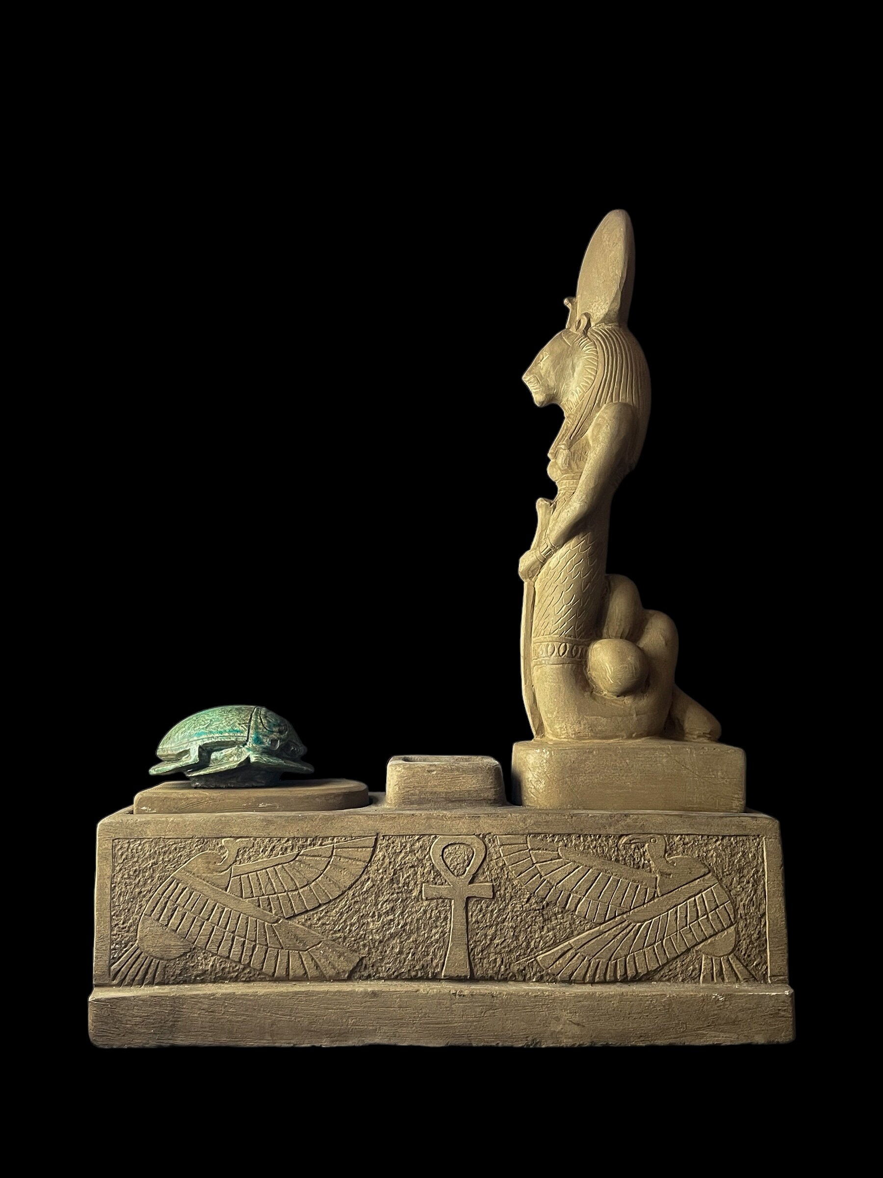Egyptian Goddess Sekhmet Statue: Cobra, Scarab, Ankh