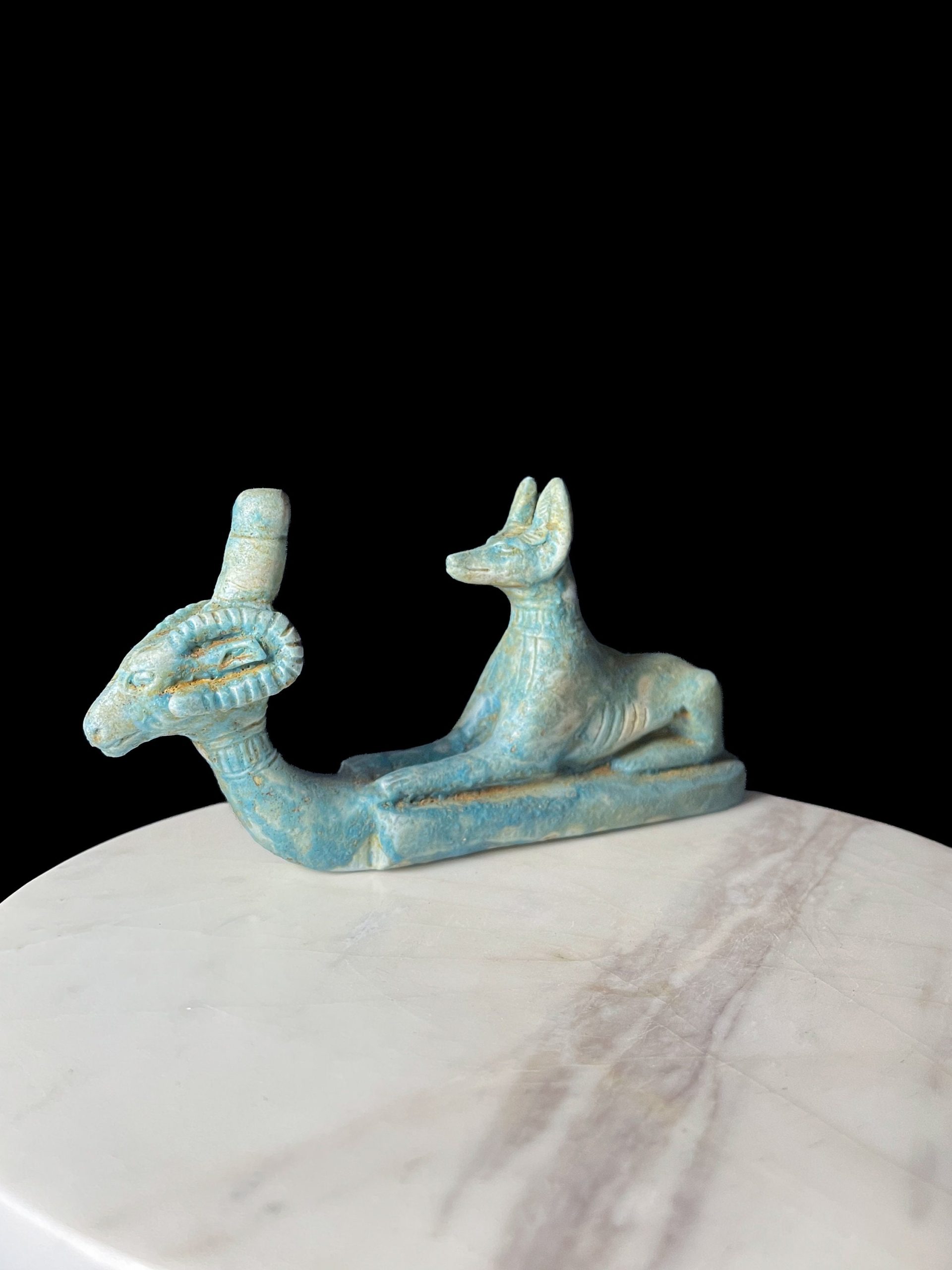 Egyptian God Anubis statue made from the healing Hammer stone, a unique statue for your Egyptian collection.