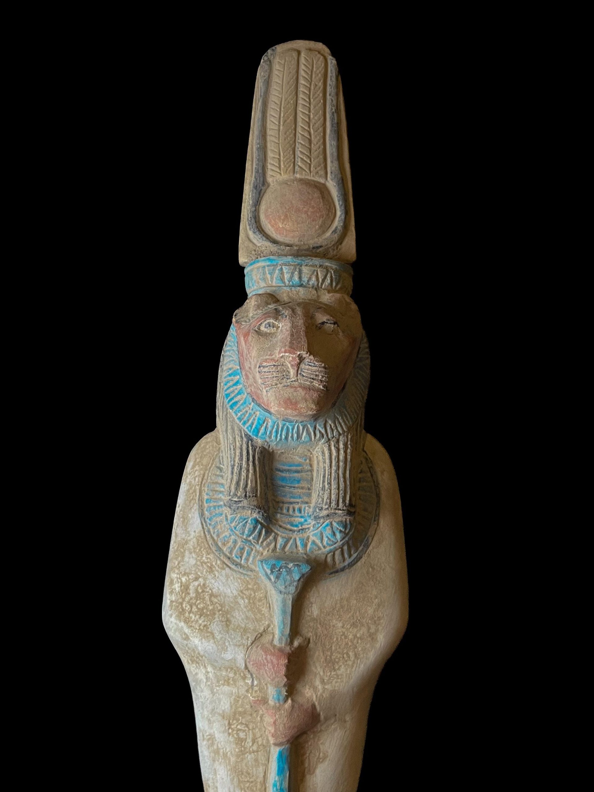 Egyptian Goddess Sekhmet statue made in Egypt, The powerful Goddess Sekhmet colorful statue.