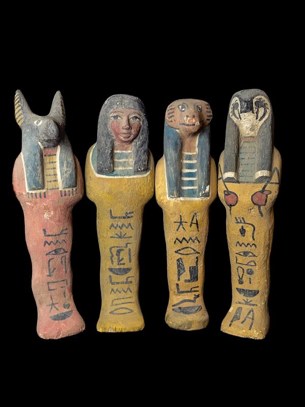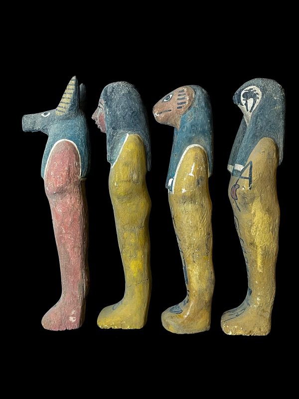 Ancient Egyptian Canopic Jars: Sons of Horus Wooden Figurines