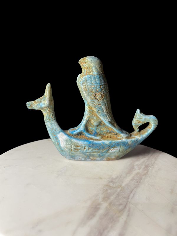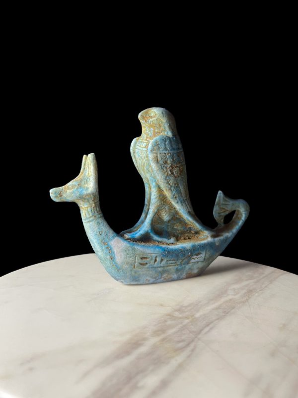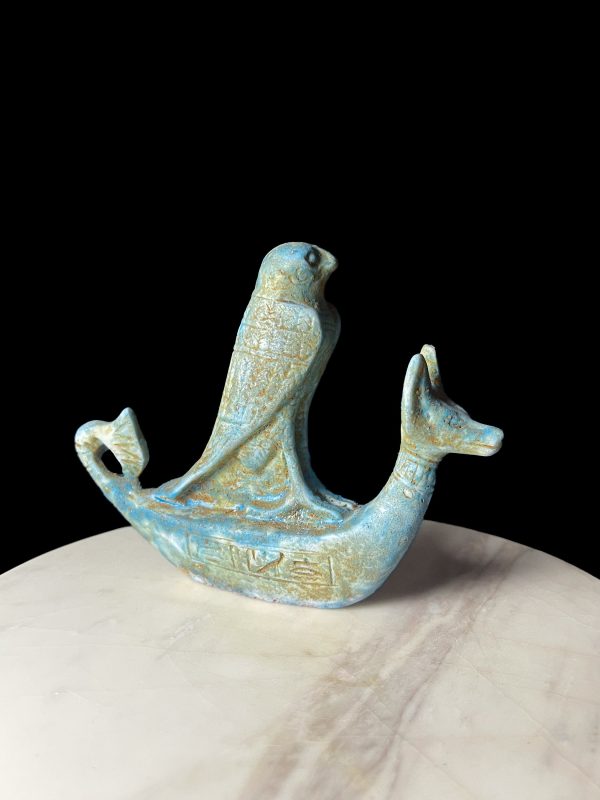 Egyptian God Anubis ship with God Horus God of the Sky with Lotus flower