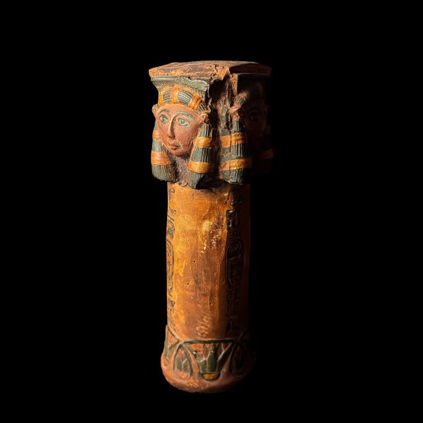 Uncommon shape for Goddess Hathor Candle holder made from stone.
