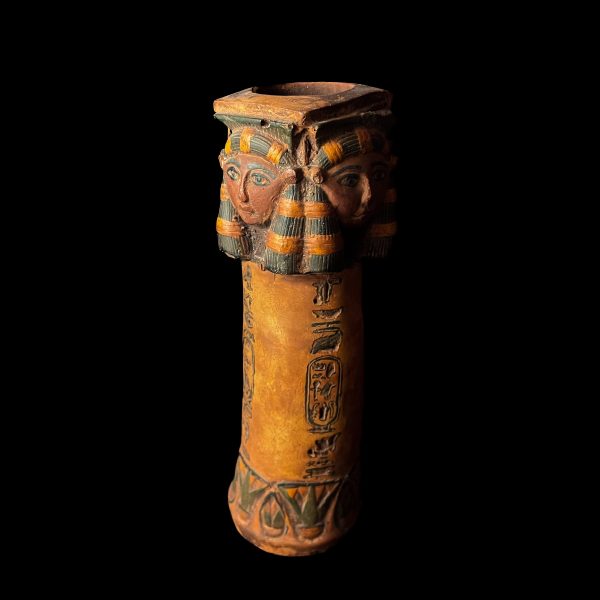 Uncommon shape for Goddess Hathor Candle holder made from stone. exclusive Candle holder for Goddess Hathor