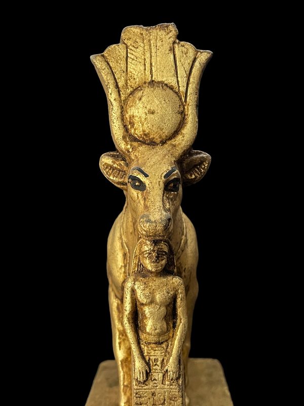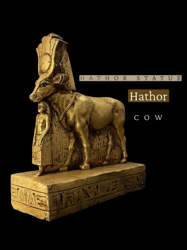 Egyptian Beautiful Goddess Hathor statue with beautiful colors, Egyptian statue for Goddess Hathor made from Vintage stone.
