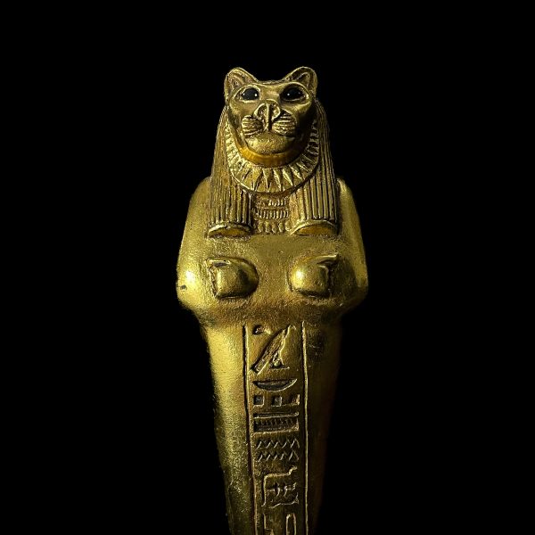 Gold Leaf Sekhmet Statue: Egyptian Goddess Decor