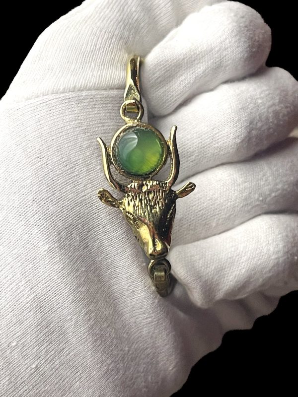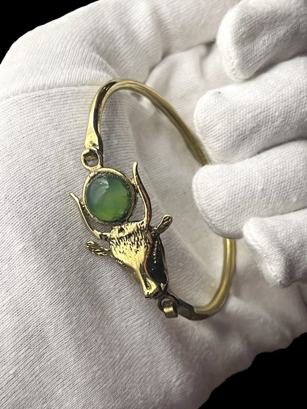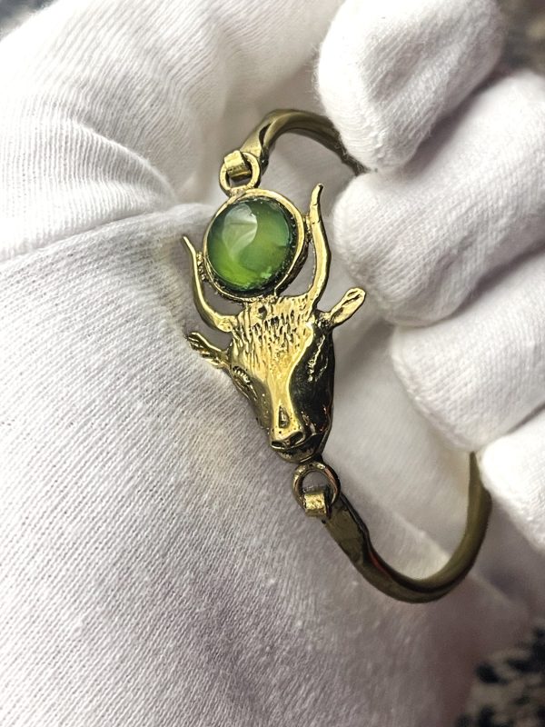 Adorn yourself with the divine elegance of our Hathor’s Embrace Bracelet – a mesmerizing masterpiece that captures the essence of the goddess herself. With every delicate curve and intricate detail, this celestial accessory celebrates your individuality, intertwining the ancient wisdom of Hathor with your own unique radiance. Embellished with celestial motifs and enchanting gemstones, it unveils a realm of bespoke craftsmanship, ensuring that you shine as brilliantly as the goddess of beauty, love, and joy. Let the world witness your divine nature with a bracelet that echoes the celestial secrets of Hathor and sets you apart in a league of your own.