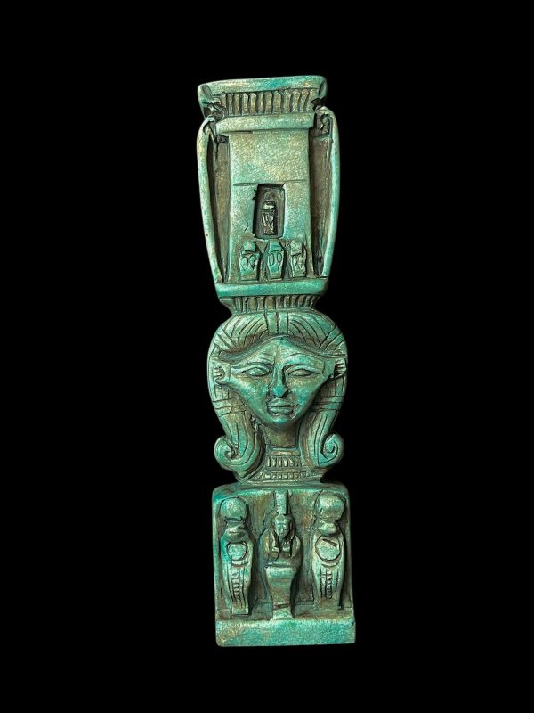 Egyptian Beautiful Goddess Hathor statue with beautiful colors, Egyptian statue for Goddess Hathor made from Flamestone.