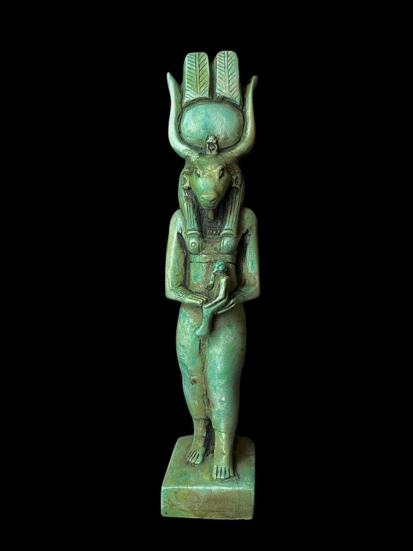 Handmade Goddess Hathor Statuette with God Horus, Statue for the Egyptian Goddess Venus
