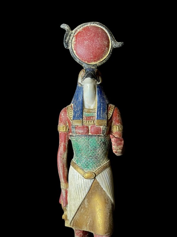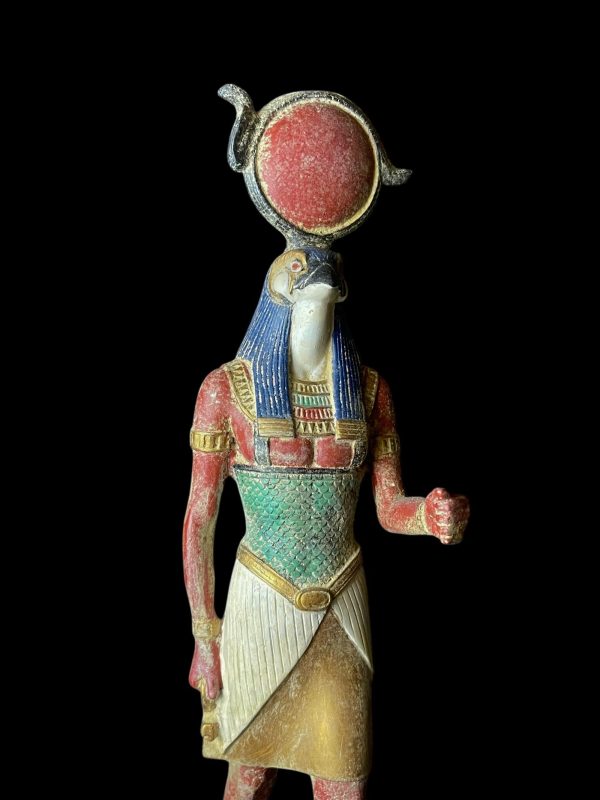 Rare Falcon Egyptian God Ra Statue with Sun Disk
