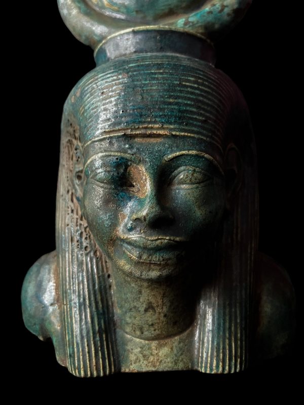 Prepare to be mesmerized by this absolutely breathtaking Hathor statue, a true masterpiece of Egyptian craftsmanship! Crafted using the very same techniques that were employed by the ancient Egyptians, this one-of-a-kind piece is a stunning representation of the beloved goddess Hathor. From the delicate features to the graceful, feminine poise, every aspect of this statue has been sculpted with the utmost care and attention to detail. Hathor, the goddess of love, beauty, and joy, is beautifully embodied in this exceptional work of art. Imagine the elegance and cultural significance this Hathor statue would bring to your home or museum display – it’s sure to captivate and inspire all who behold it. This is a truly unique opportunity to own a piece of ancient Egyptian history and mythology, created with the same reverence and artistry as the original. Don’t let this exquisite Hathor statue slip through your fingers!