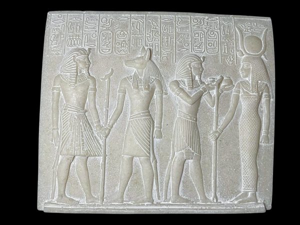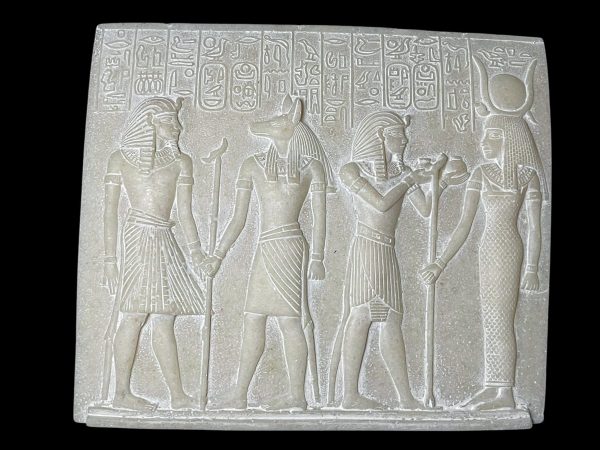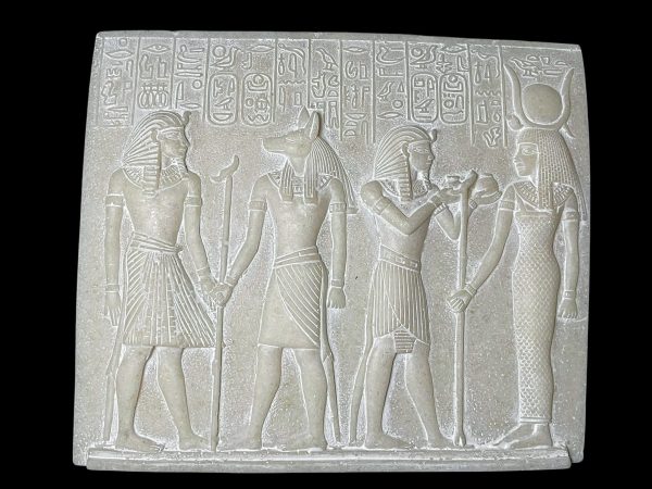 The famous Egyptian wall relief for God Anubis and Hathor with Ramses the second. Best match for your Egyptian corner in your home.