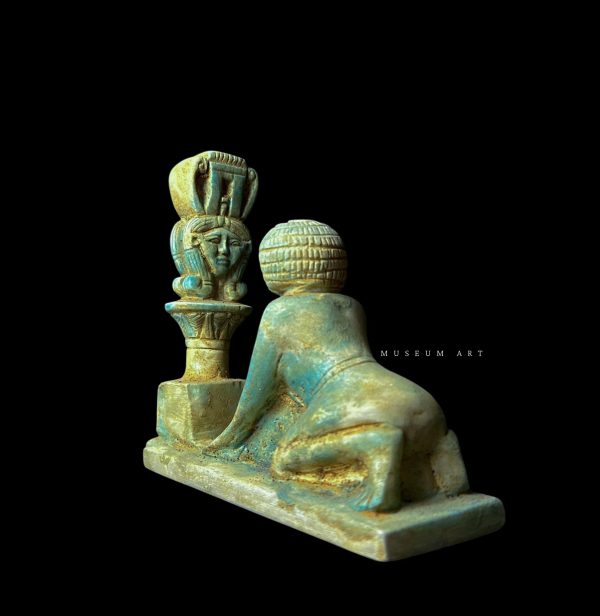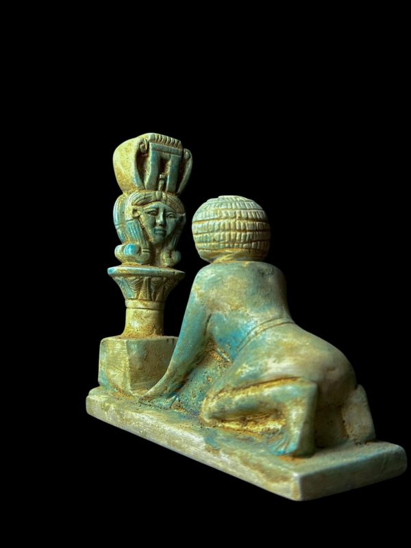 Egyptian Beautiful Goddess Hathor statue with High priest, Egyptian statue for Goddess Hathor made from Vintage stone.